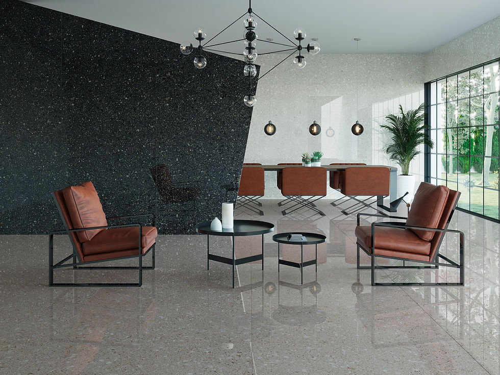 Le carrelage effet marbre est de nouveau à la mode, dans ses classiques blanc Calacatta ou Statuario comme pour le noir Marquina.